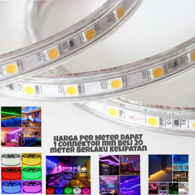Jual Lampu Led Strip Selang Smd 5050 Per Meter 220v Input Ac Putih Warmwhite Merah Biru Hijau Pink 1 M Indonesia Shopee Indonesia