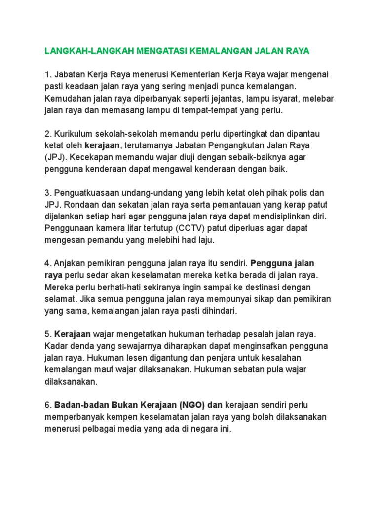 Langkah Mengatasi Kemalangan Jalan Raya Pdf